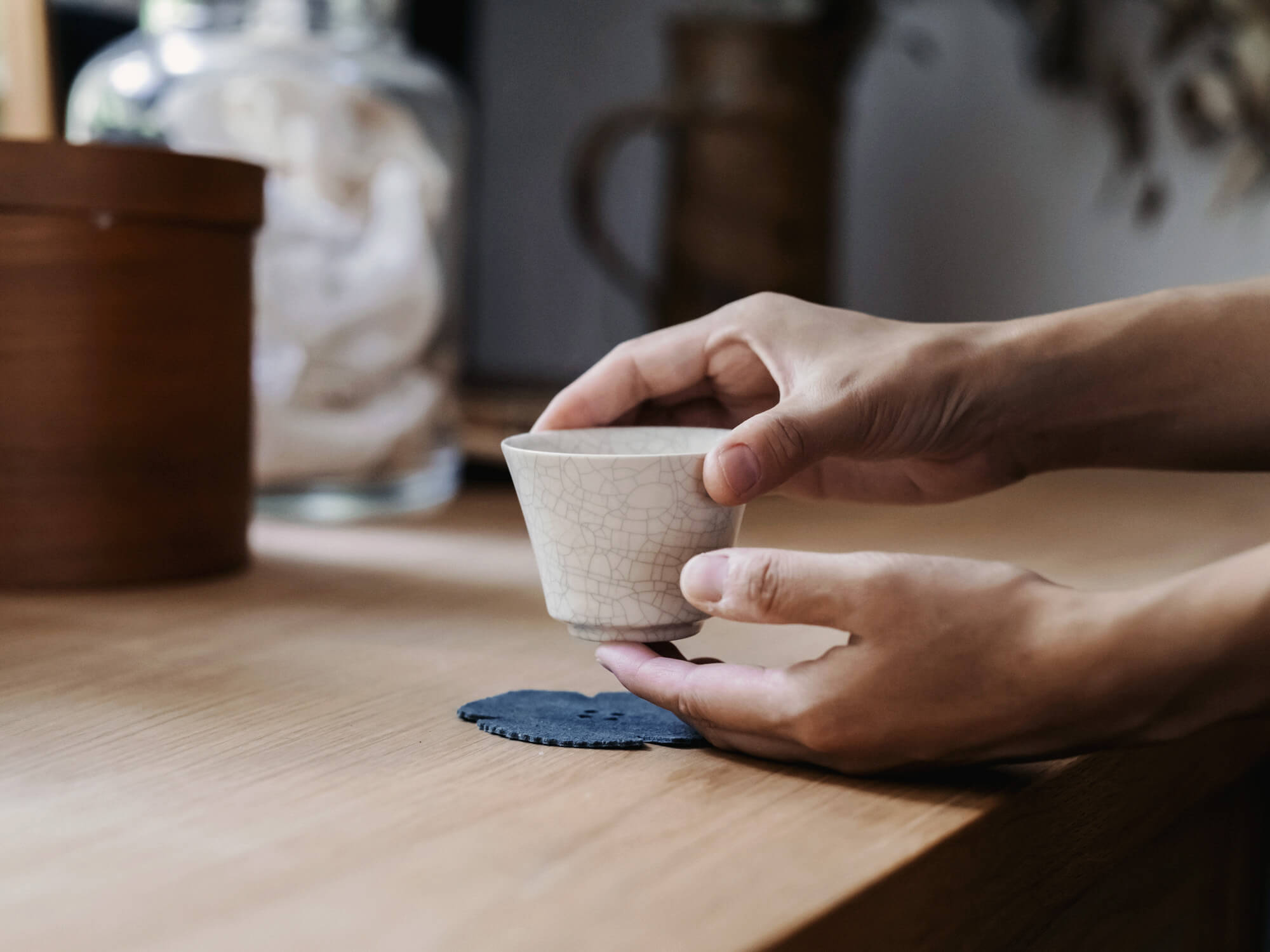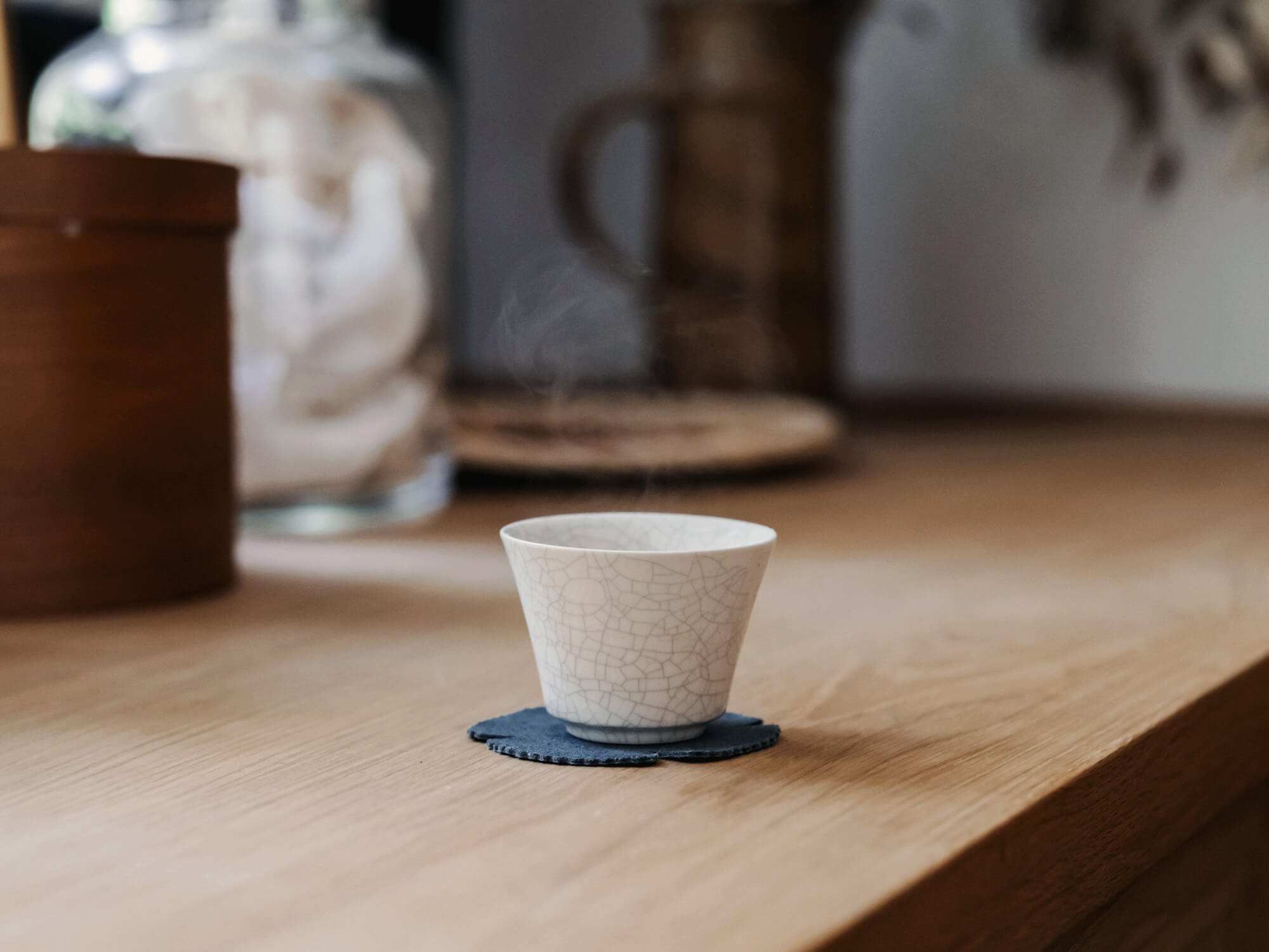 釉薬の透明感の中にほんのりと浮かぶひび模様が、静かな美しさを演出します。