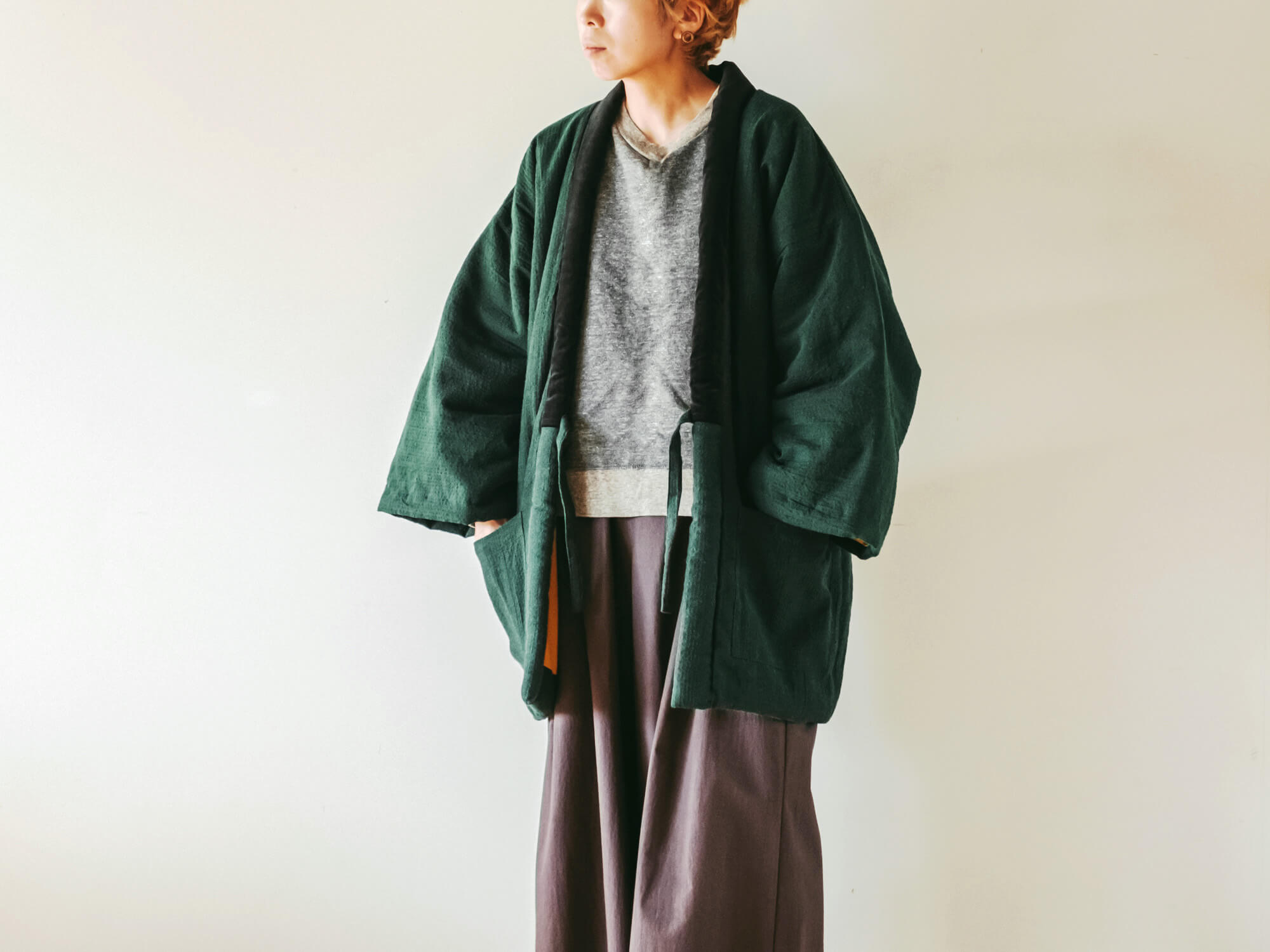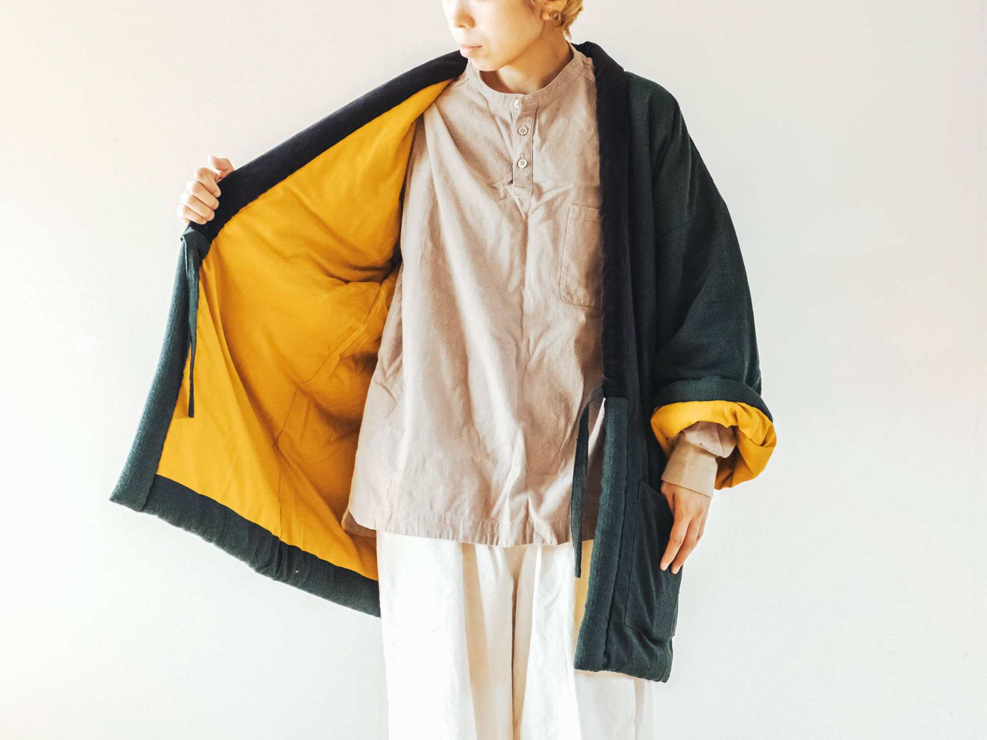 50年以上続くはんてんづくりは、着る人のことを考えて高品質化、そして今のライフスタイルに合わせたモダンで粋な色や柄、デザインへと徐々に進化を続けてきました。部屋着だったはんてんは、外出着としても十分通用するアウターとしてや、お尻まで温めてくれるコートの代わりとなる防寒着へ。また、これだけ手間のかかる作り方と品質にも関わらず、アウターとして考えると価格がとてもリーズナブルなのも魅力の一つ。