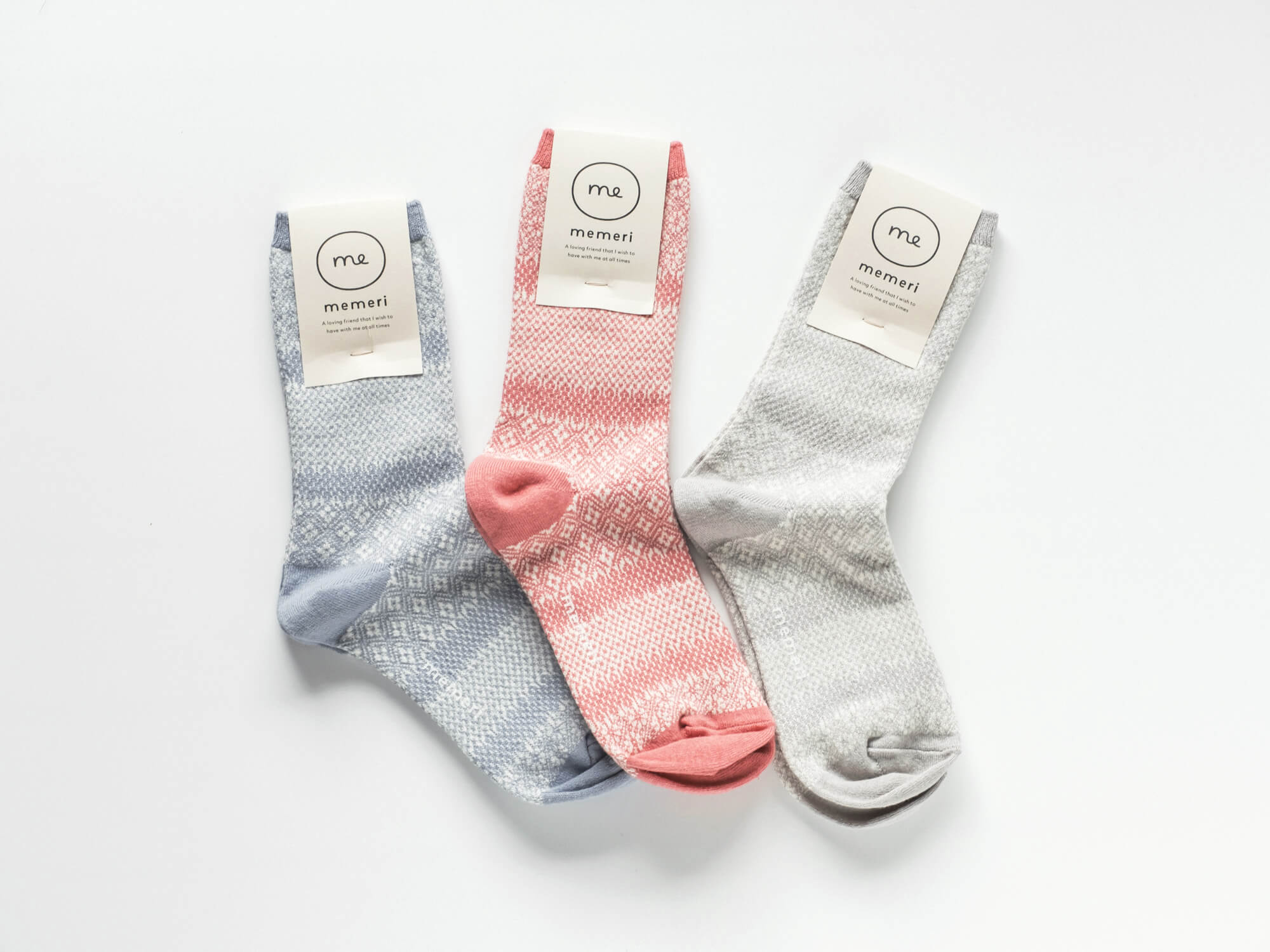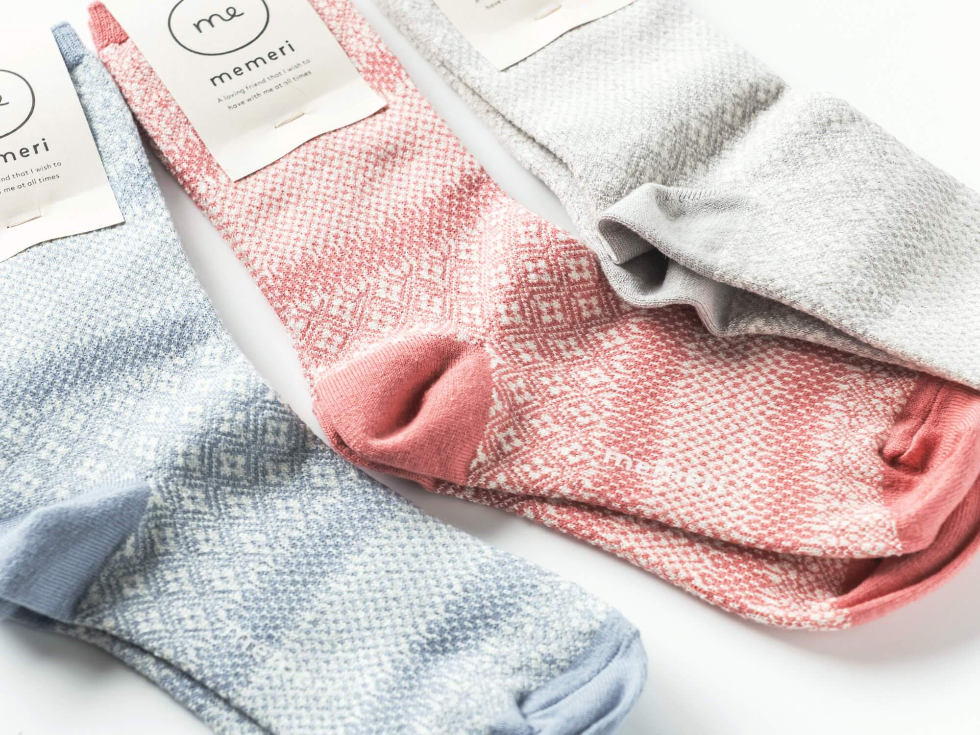 コットンリネンジャガードソックス ME0501/memeri/NISHIGUCHI KUTSUSHITA
