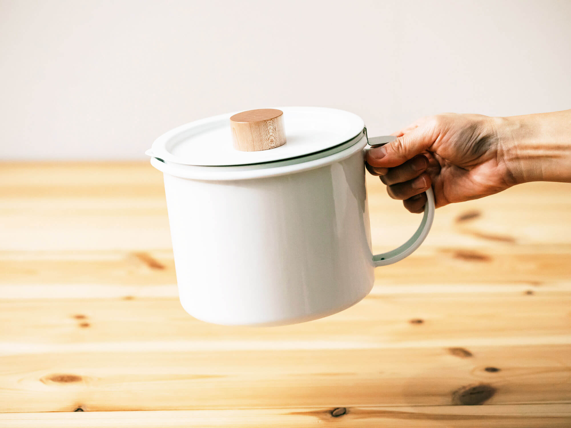 製造は昌栄工業(しょうえいこうぎょう)、デザインは小泉誠さん、販売はform lady(フォームレディー)、そして琺瑯の加工は日東エナメル。それぞれのプロフェッショナルが手を組み、使いやすくて美しい、暮らしにすっと馴染む道具を目指して作られています。 真っ白な琺瑯に、やさしい木の取っ手。無駄を削ぎ落とした静かな佇まいの中に、どこかぬくもりがある。 そんなkaicoの道具は、気づけば毎日の料理で手に取ってしまう不思議な存在です。 名前の「kaico」は、糸を紡ぎ出す蚕(かいこ)に由来しています。暮らしの中で、静かに、でも確かに、働いてくれる存在でありたい。そんな想いがこの名前には込められています。