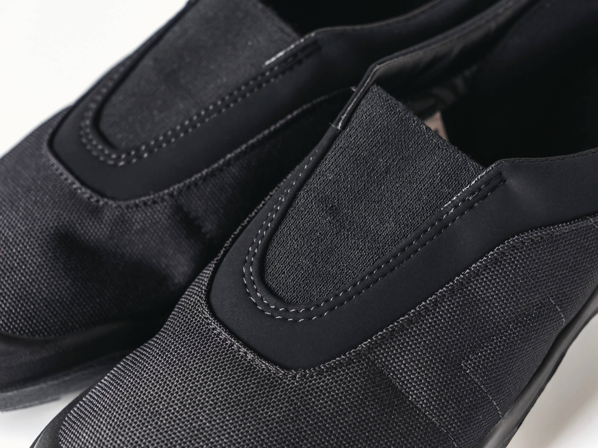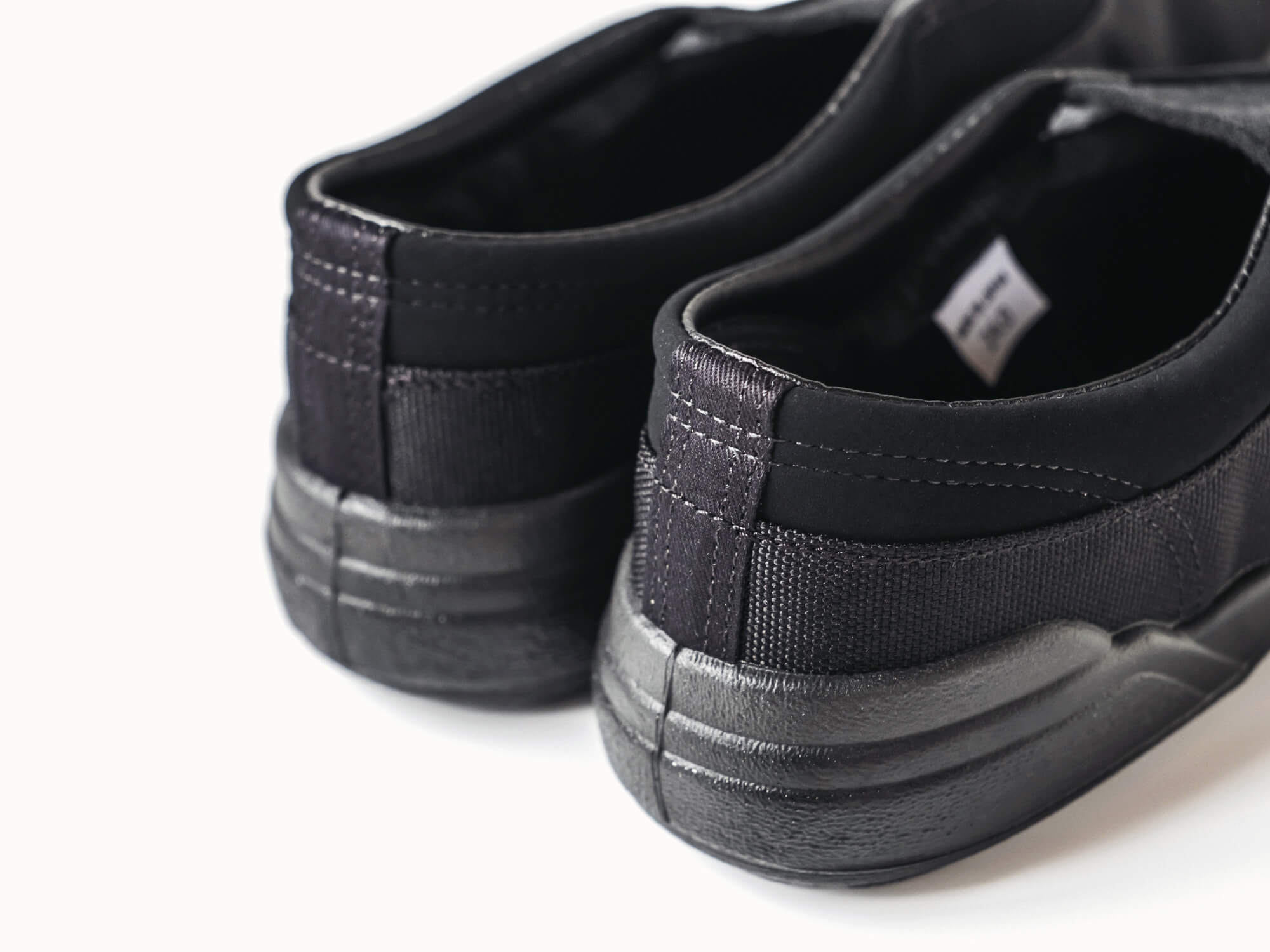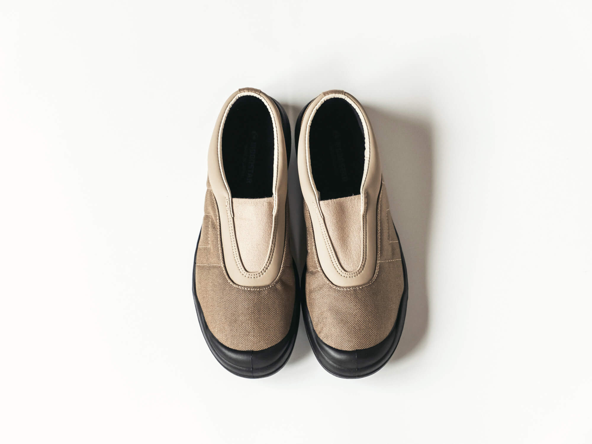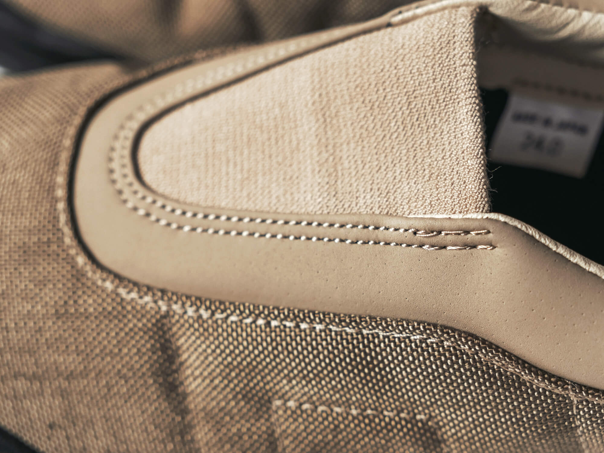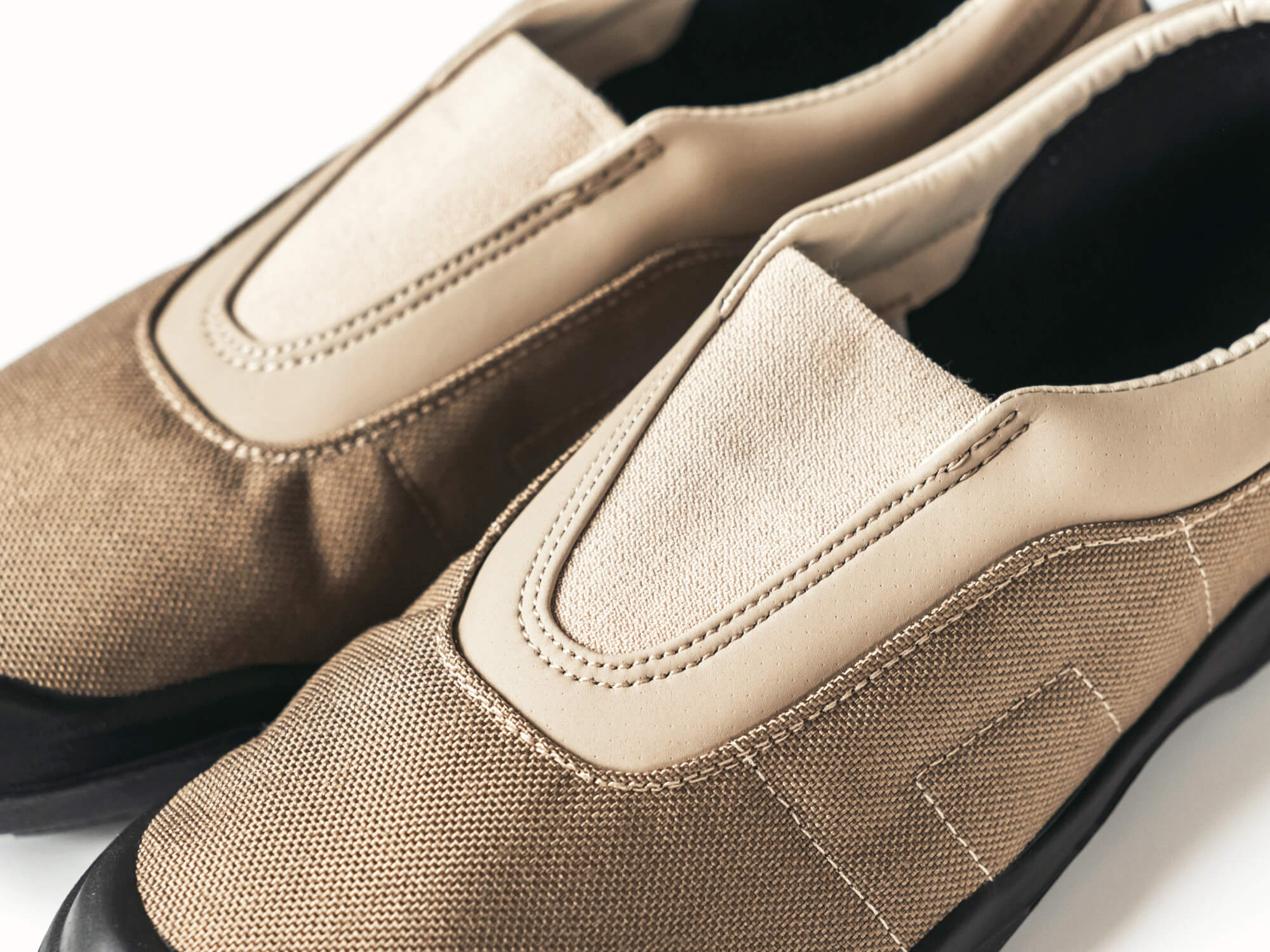 アッパーには、摩耗に強く耐久性に優れたコーデュラポリエステルを使用。軍用トレーニングシューズを思わせる、無骨ながらも洗練された佇まいが魅力です。キャンバス地とはまた違ったマットな表情で、スポーティすぎず、どんな服にも馴染みやすい印象に。