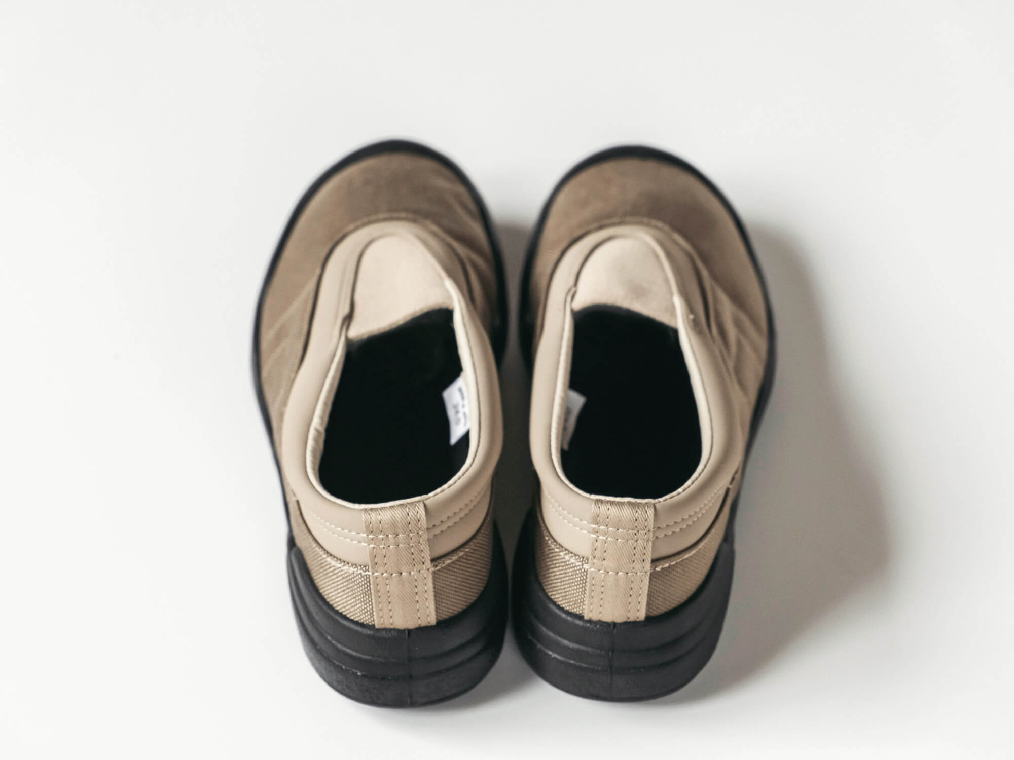 カラーは、落ち着きのある「BEIGE」と、オールブラックの「BLACK」の2色をご用意。アウトドアやレジャーシーンはもちろん、日々の街歩きにもフィットする一足です。