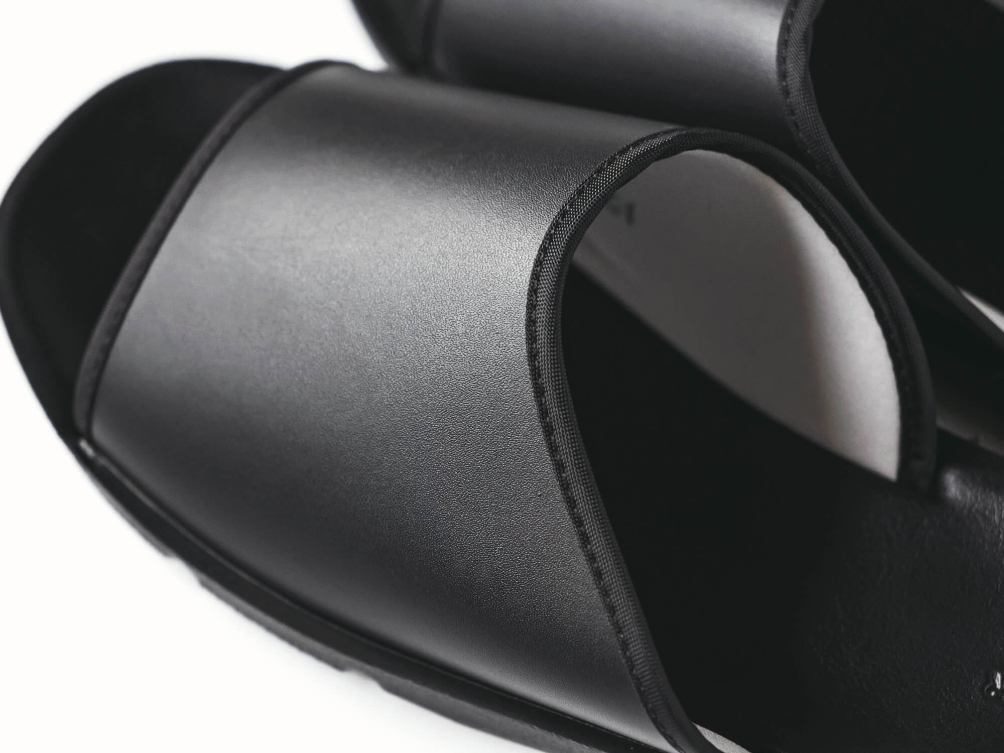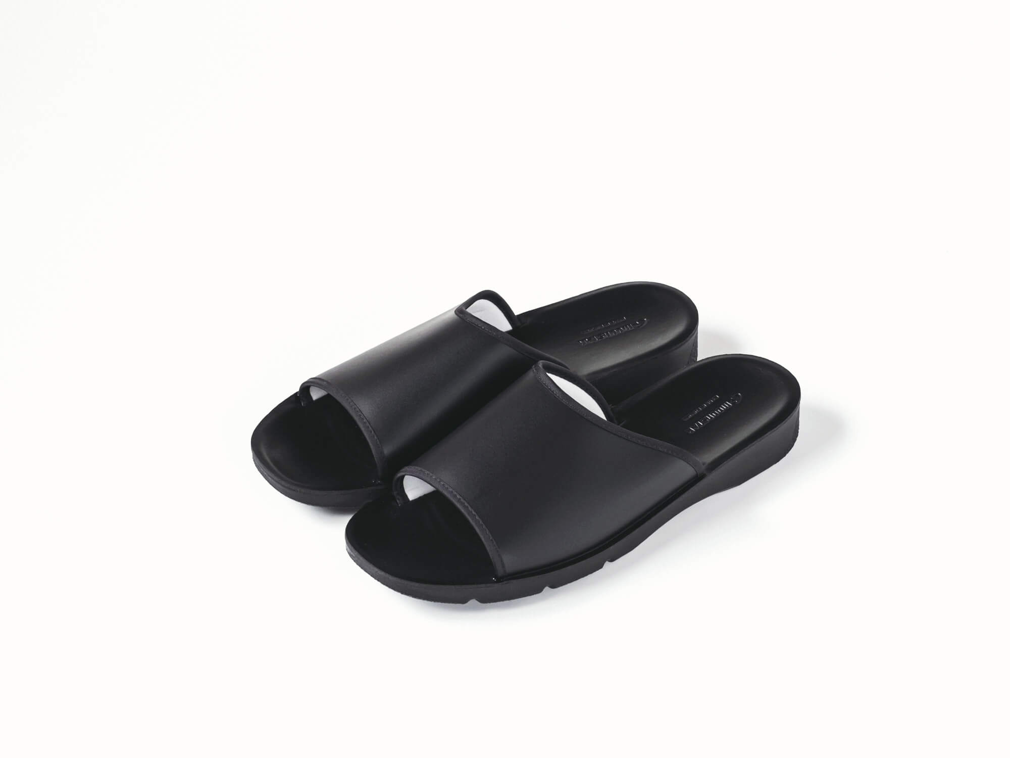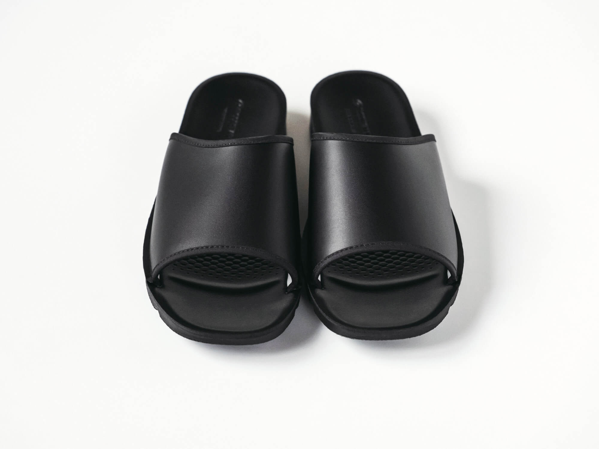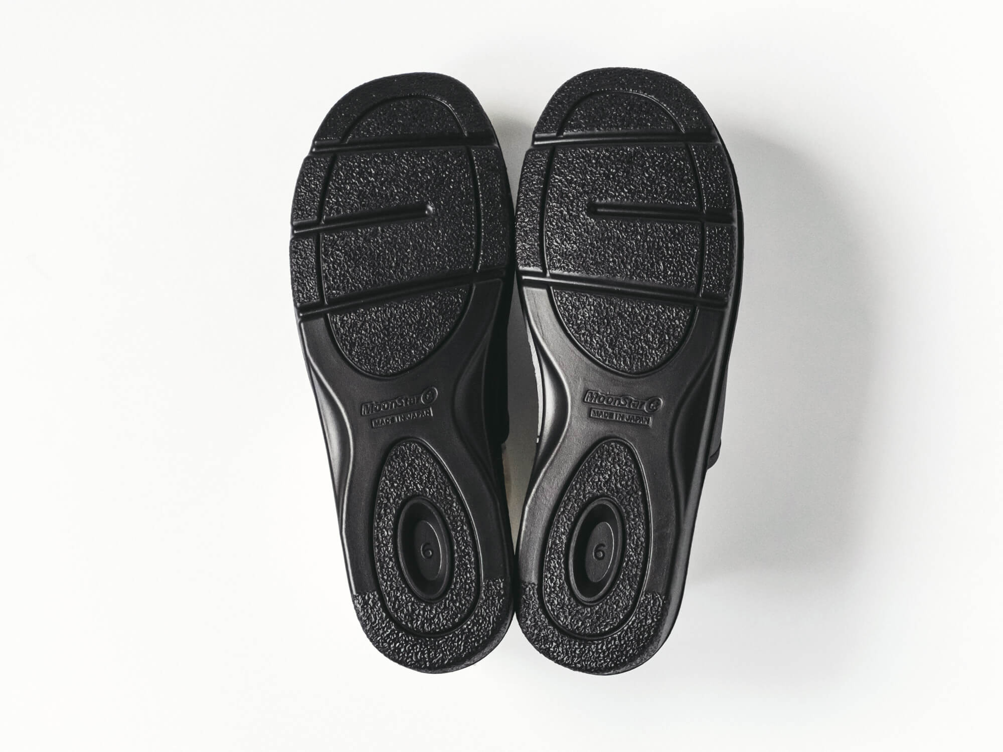 学校や病院などで使われてきた「スクールサンダル」をベースに、デイリーに履けるようデザインされた一足。すぽっと足を入れるだけで、気持ちよくフィット。あのつっかけの気軽さがそのまま、見た目はすっきりミニマルに。