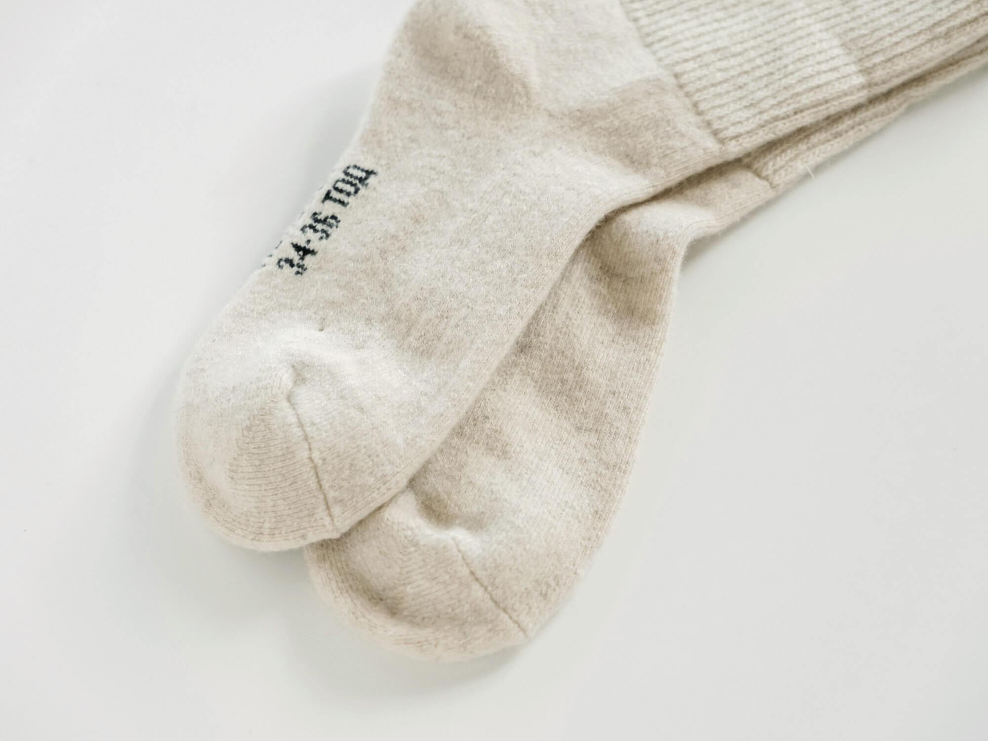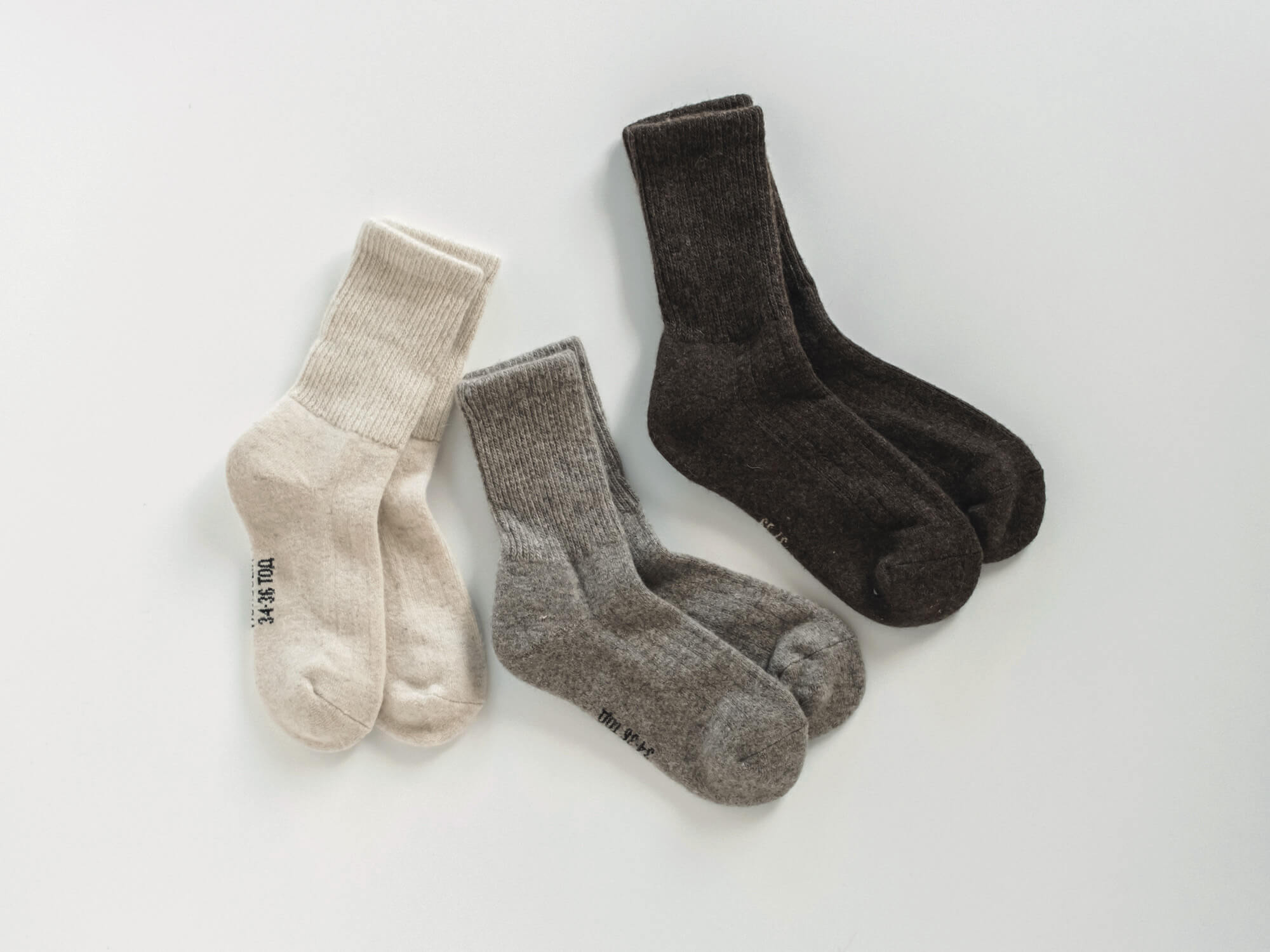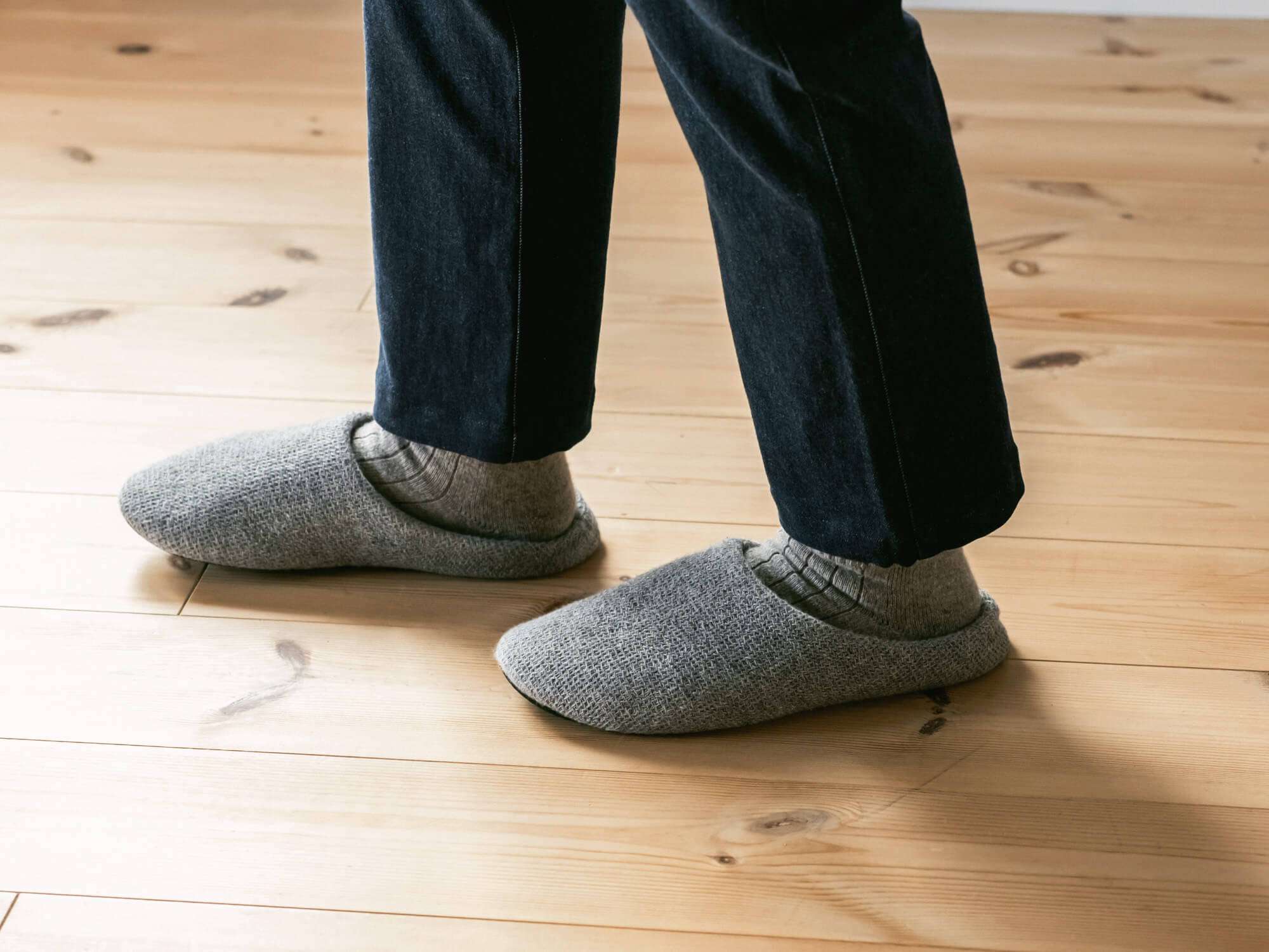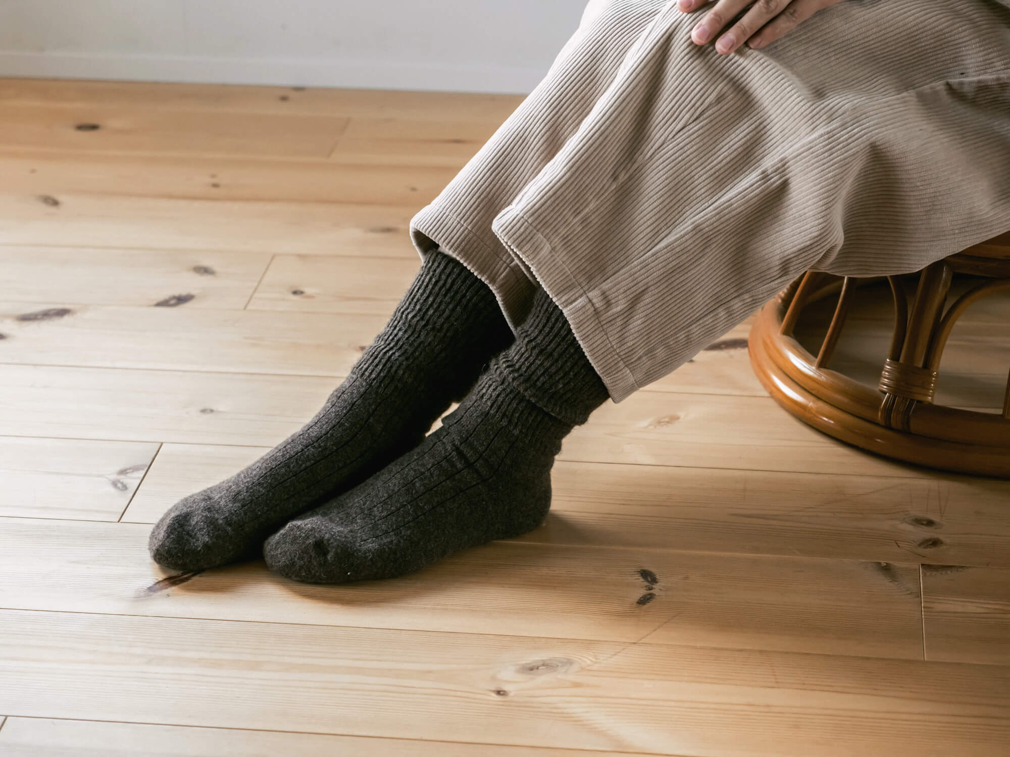 締めつけは少なく、足をやさしく包み込むような設計。冬の夜、ストーブの前でくつろぐときや、冷えやすい朝の台所仕事に、足元からそっと寄り添ってくれます。