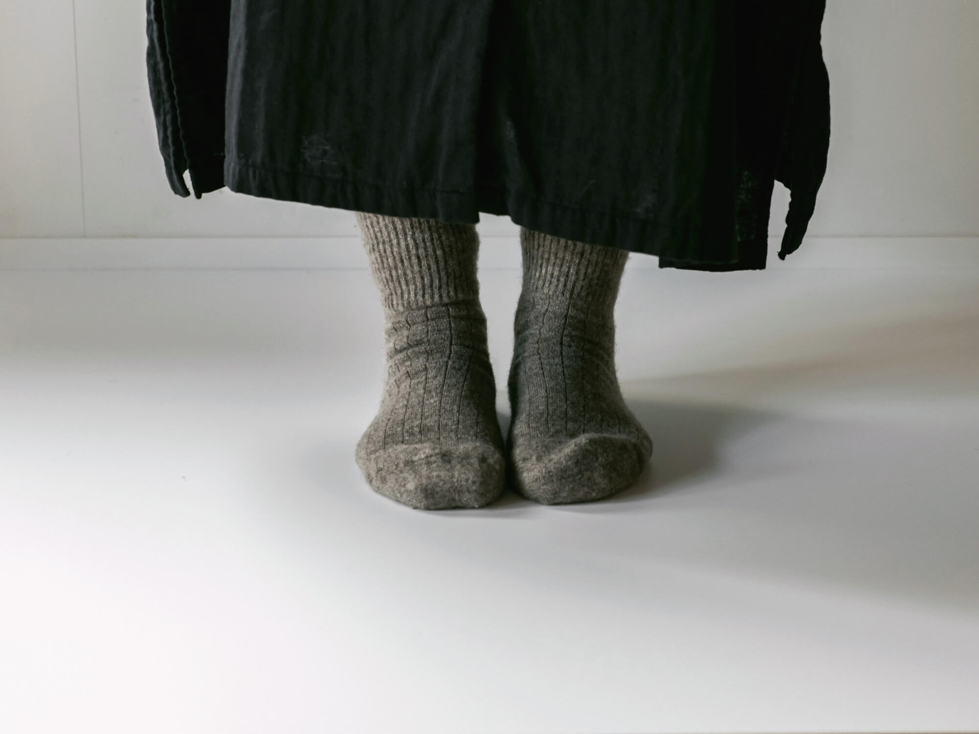 足首までしっかりと覆ってくれる長さと、ふっくらとした厚みは、靴下というより“履く毛布”のよう。冷えやすい足元を温かく保ちつつ、汗をこもらせず快適に過ごせます。足先からふくらはぎまで自然にフィットする伸びのよさも魅力です。