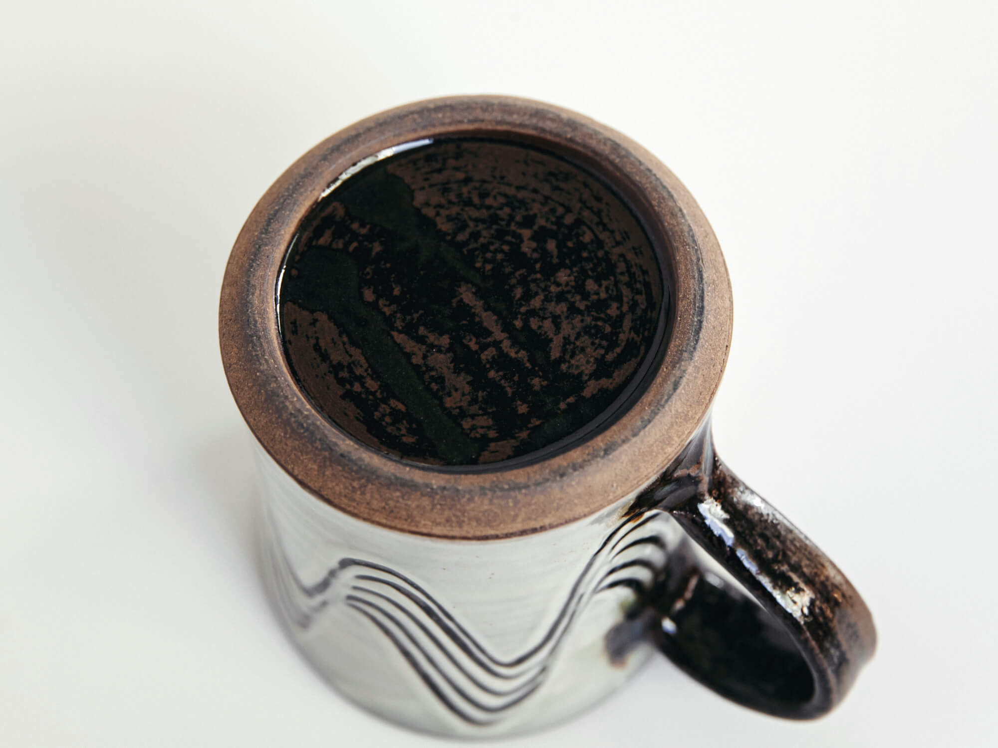 福岡県・小石原に工房を構える「鬼丸豊喜窯(おにまるとよきがま)」がつくる、素朴でどこか懐かしい風合いのマグカップです。