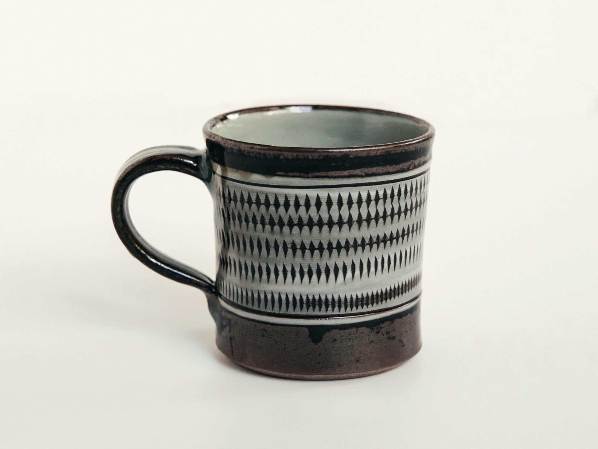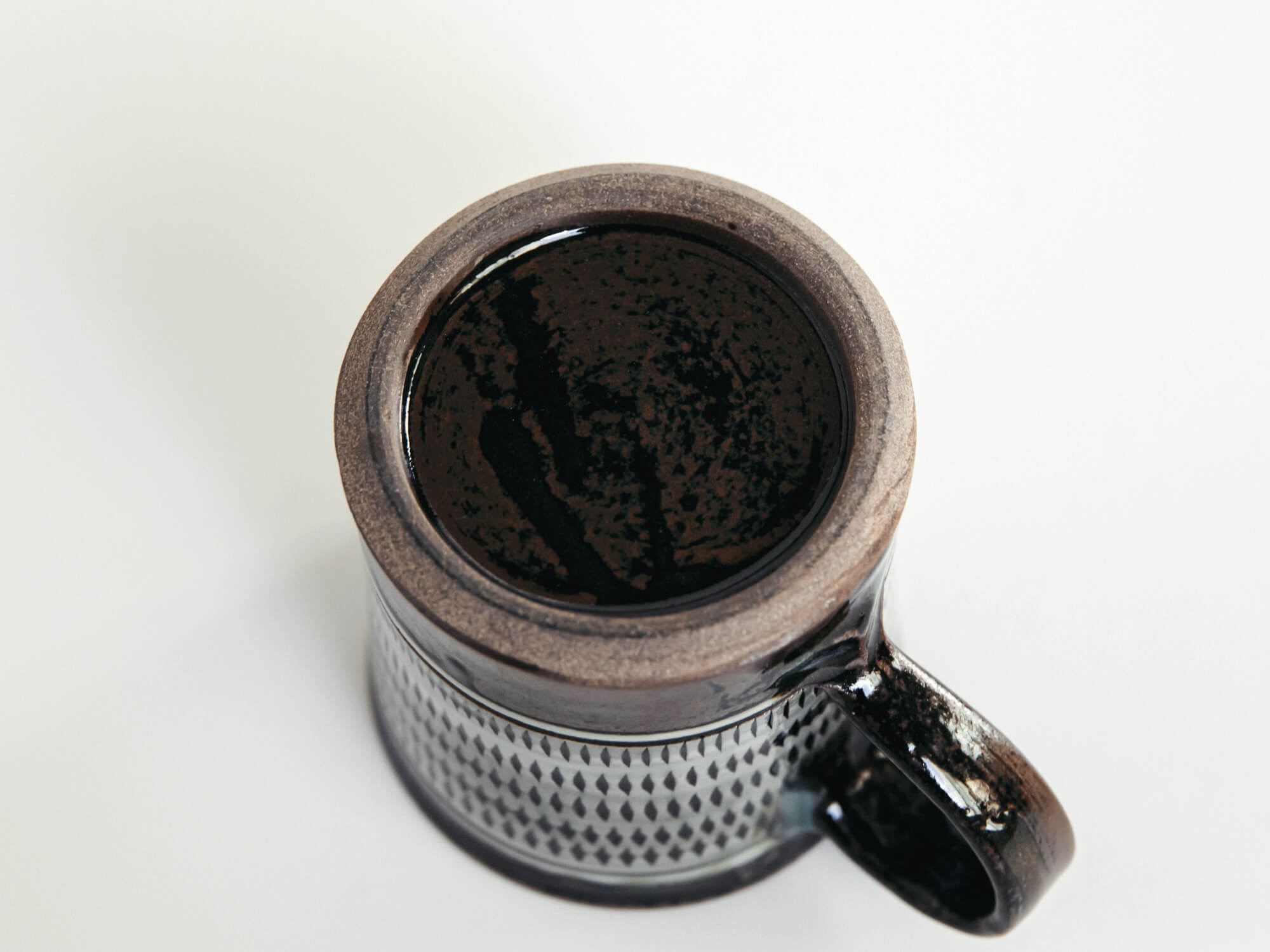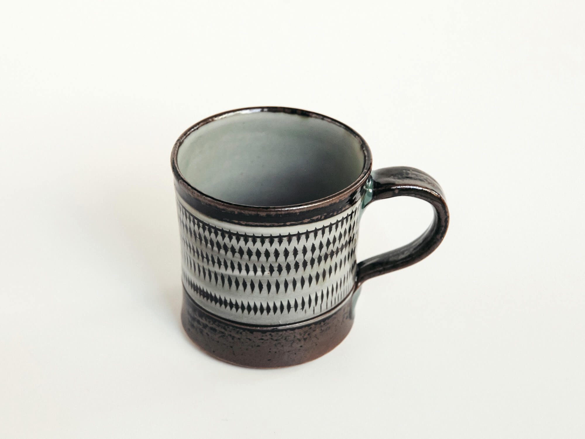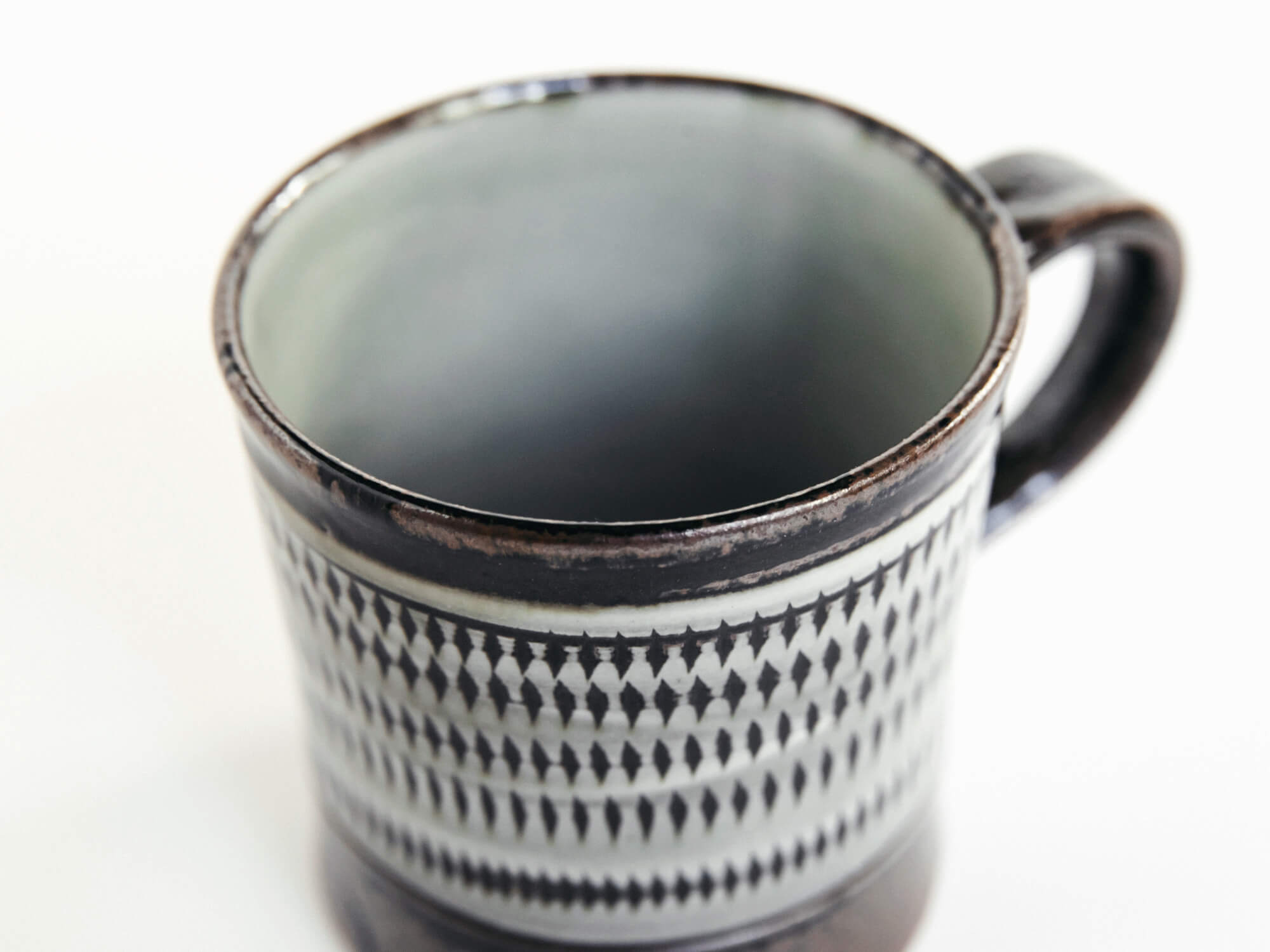 福岡県・小石原に工房を構える「鬼丸豊喜窯(おにまるとよきがま)」がつくる、素朴でどこか懐かしい風合いのマグカップです。