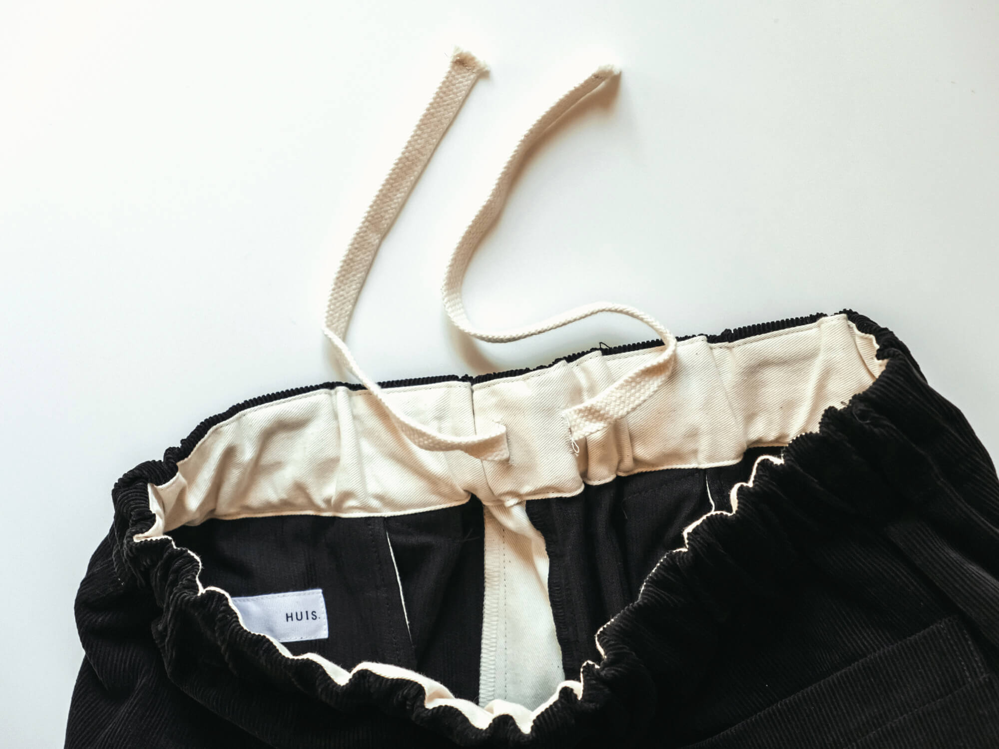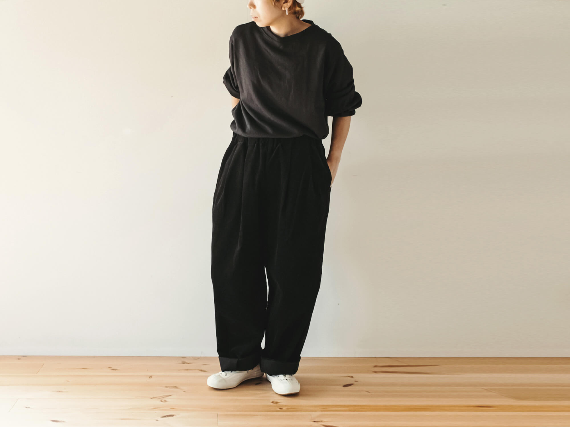 シャトルコーデュロイワイドパンツ/細畝・ブラック/ユニセックス/504/HUIS