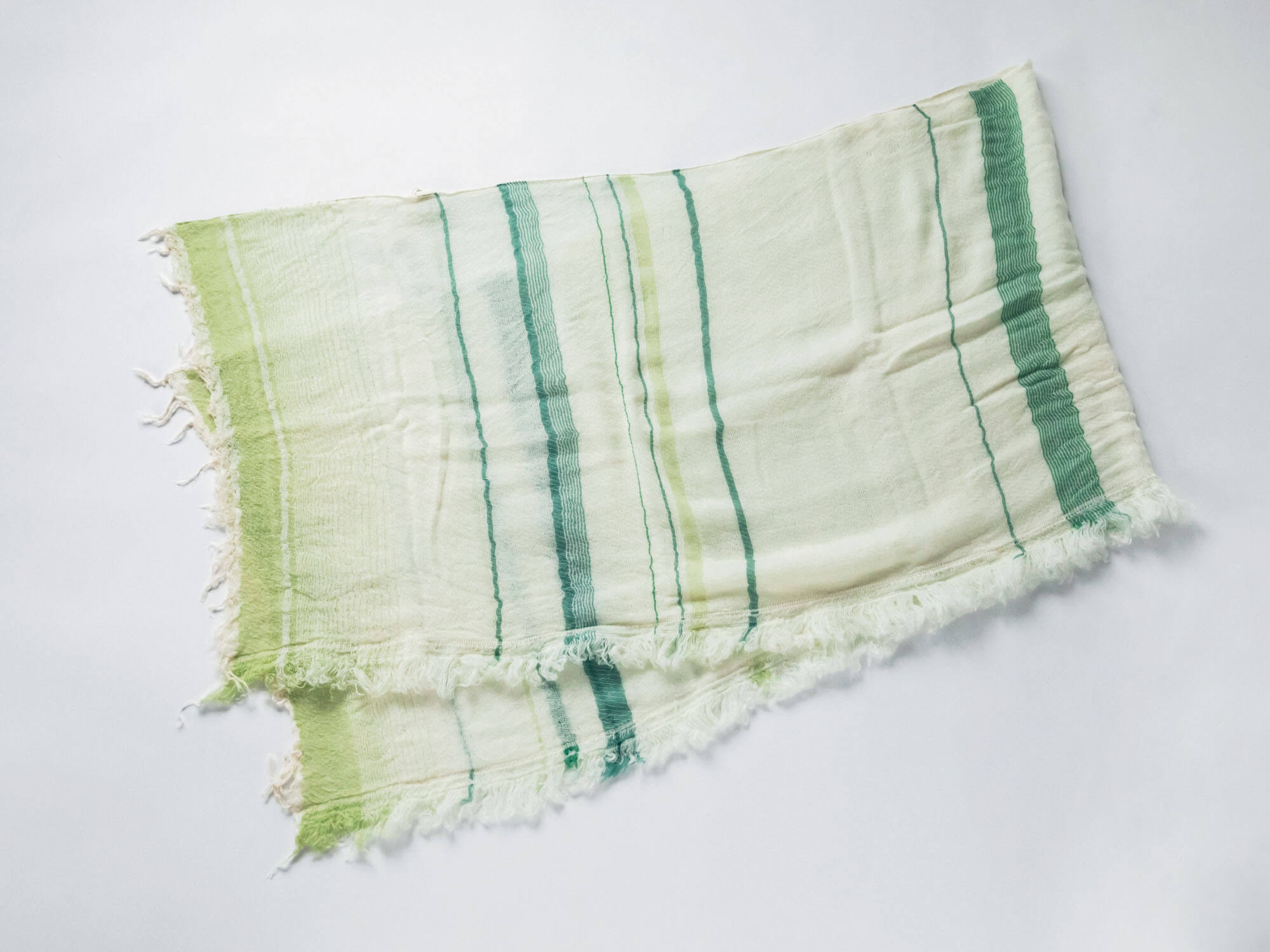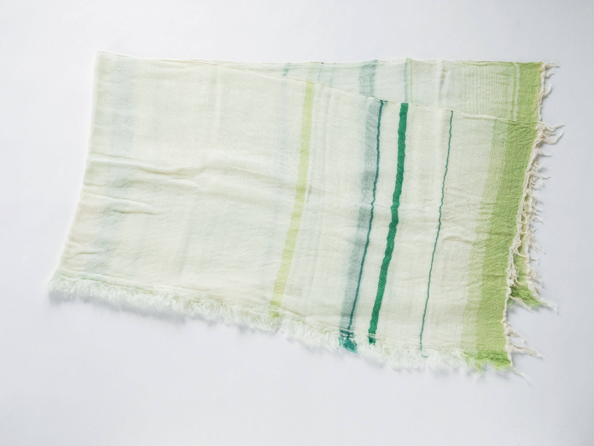 - ・柔らかさを追求した生地を織っているため、織り目がゆるく、取り扱いが繊細な作品となっています。