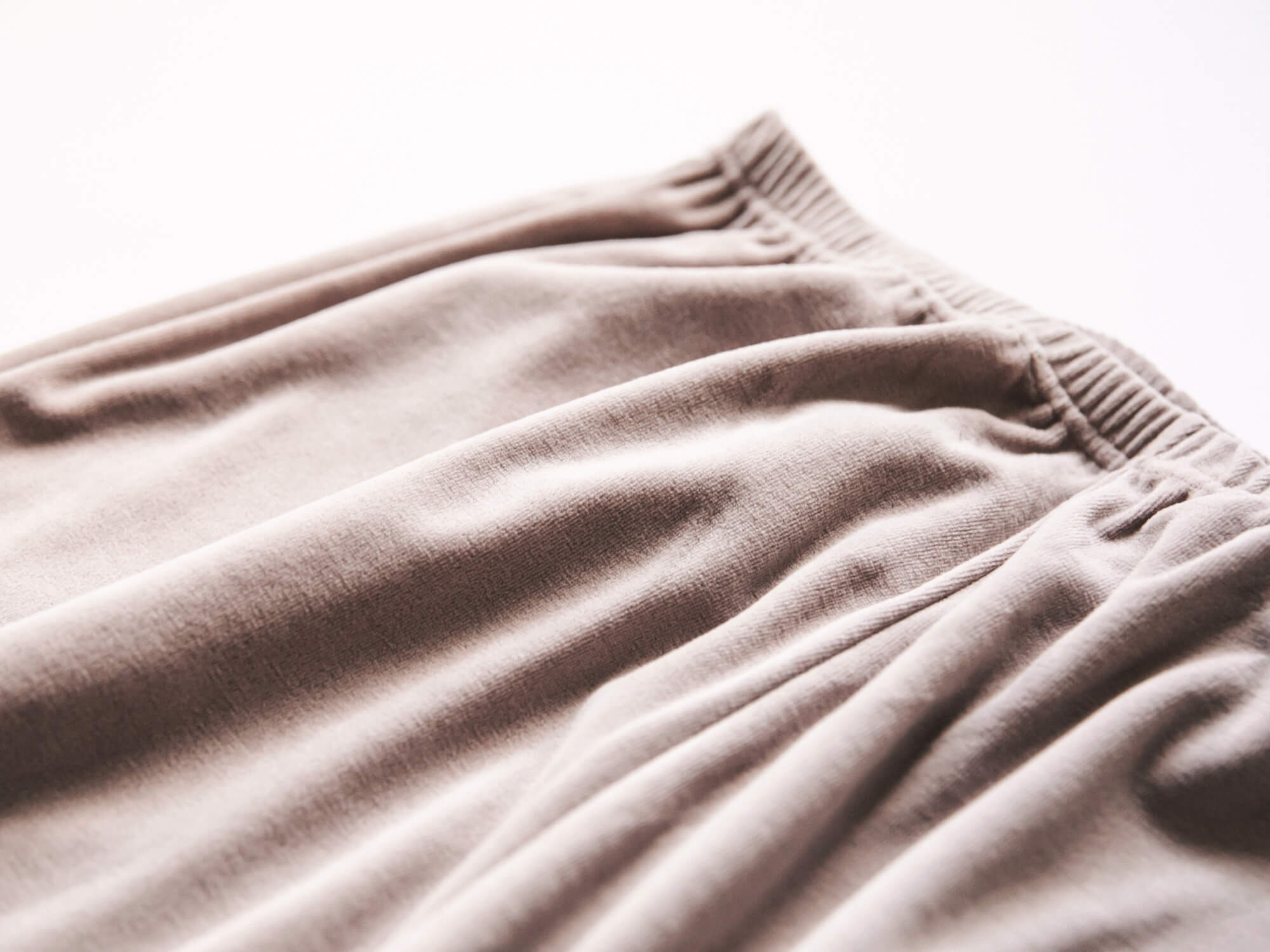 ベロアは空気を含みやすく、ほんのり保温性があるのも嬉しいところ。冷え込む季節でも、しっかりあたたかく、軽やかに過ごせます。