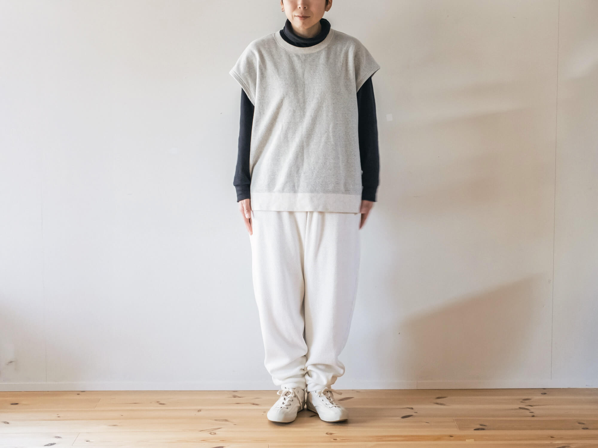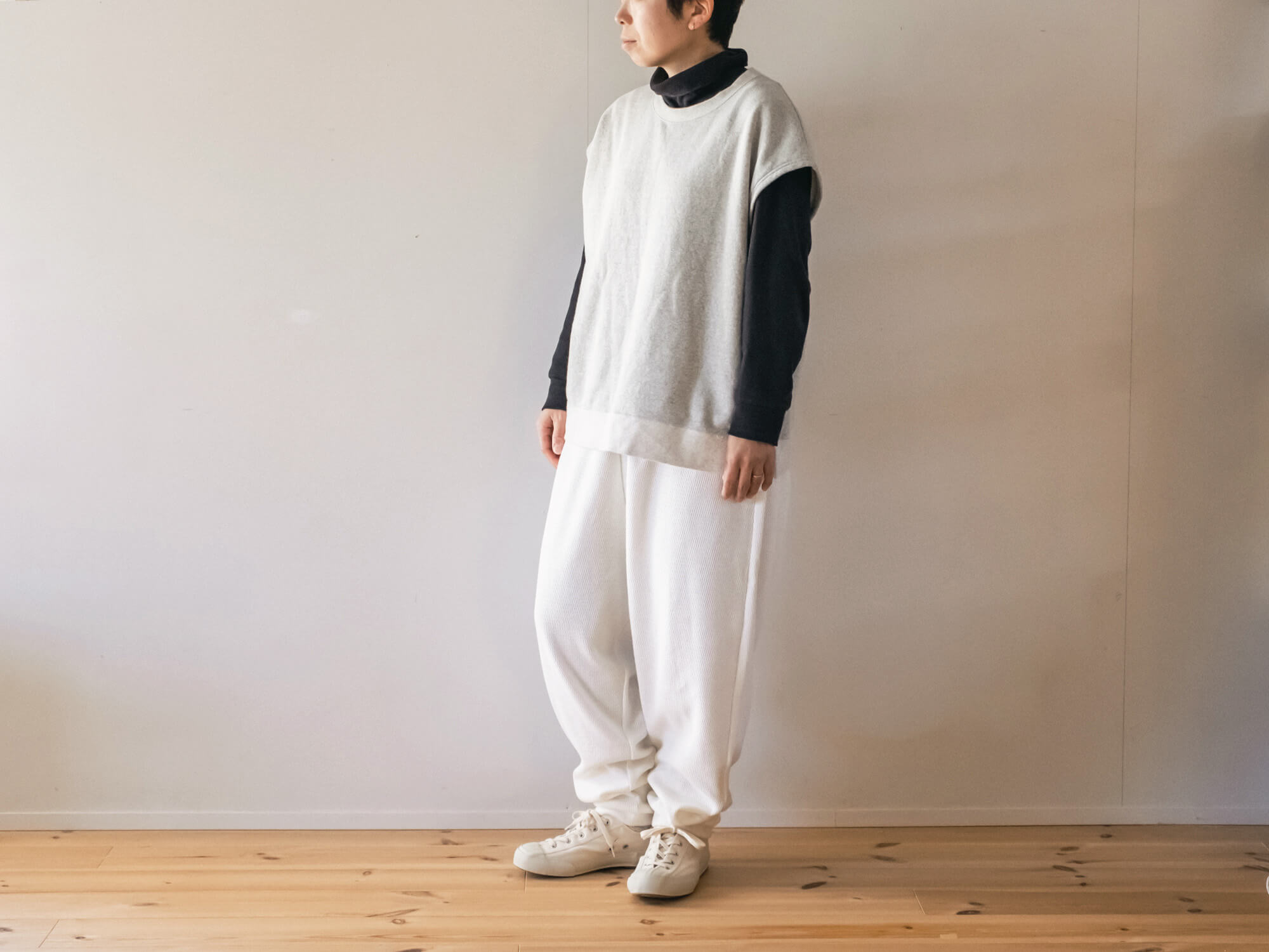 ゆるいのに、なんだか気持ちが整う。そんな“デイリーごほうびパンツ”として、ぜひワードローブに迎えてみてください。
