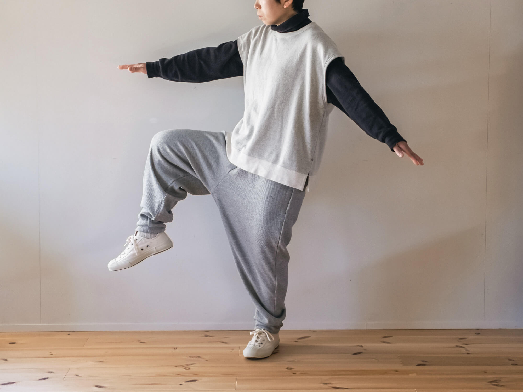 どんなシーンにも自然になじんでくれるのが、ドバイパンツの魔法。裾がすぼまっているので家事のときも邪魔にならず、脱ぎ着もラク。整体やマッサージに行くときに、意外と重宝するという声も多いです。