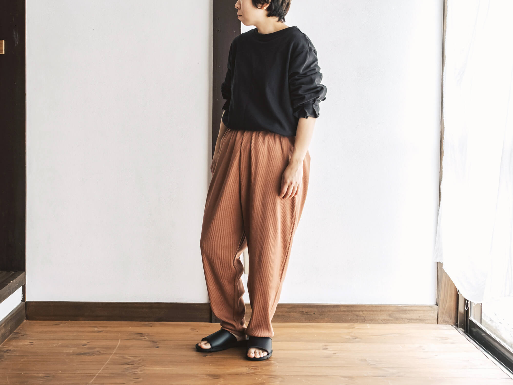 ゆるいのに、なんだか気持ちが整う。そんな“デイリーごほうびパンツ”として、ぜひワードローブに迎えてみてください。